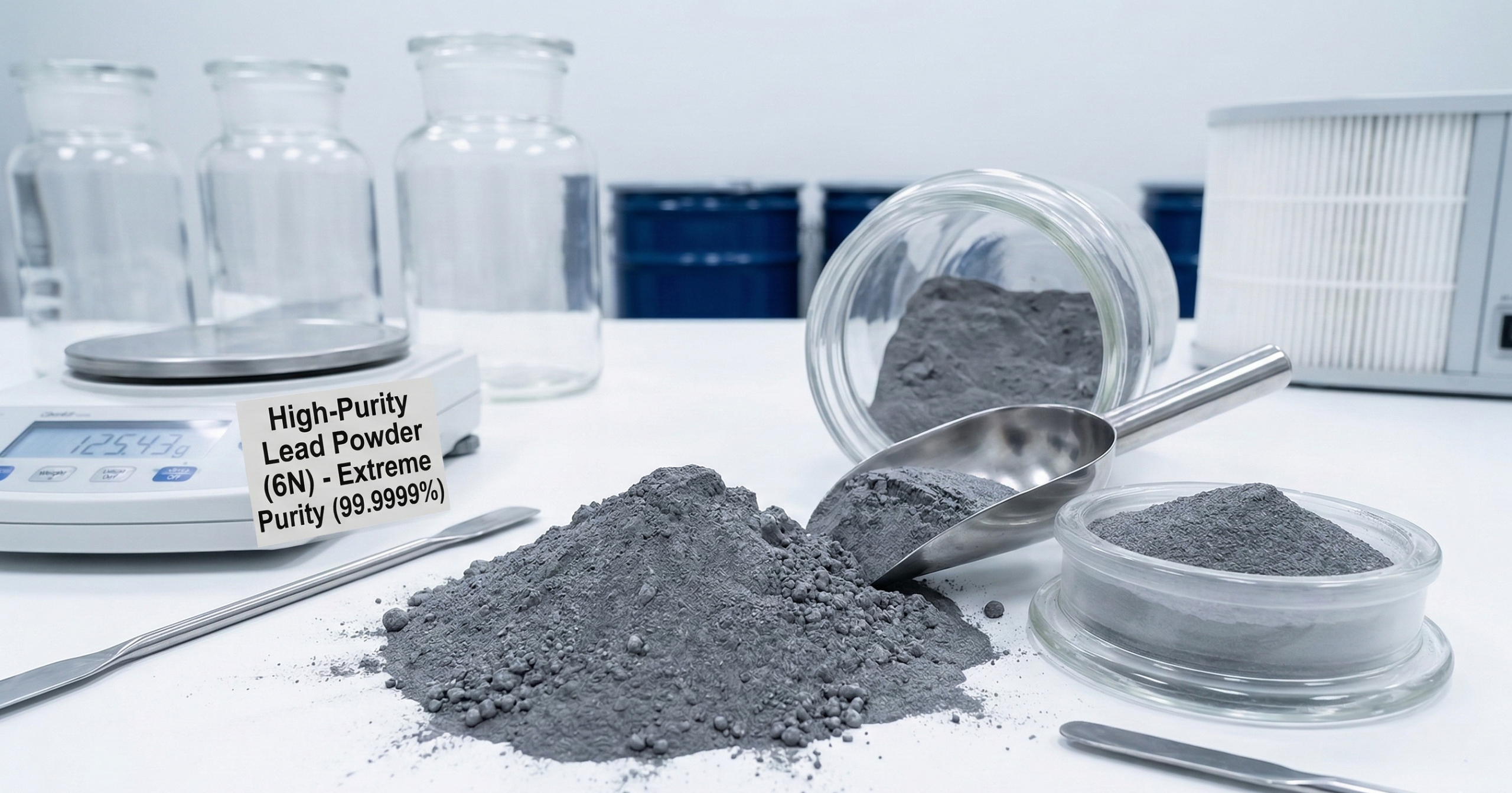 Lead Powder 6N (99.9999%) – Technical Description Physical and Chemical Properties Lead is a dense, malleable post-transition metal with an electron configuration of Xe4f^14 5d^10 6s^2 6p^2. This configuration determines its chemical behavior, characterized by high corrosion resistance and the ability to form stable protective oxide layers. Lead has a melting point of 327.5°C, a boiling point of 1749°C, and a high density of approximately 11.34 g/cm³.Among specialized materials, ultra-high purity lead stands out for its exceptional capability as a radiation shield and its unique isotopic stability. These characteristics, combined with extreme purity levels, make 6N (99.9999%) lead powder indispensable in fields such as microelectronics (low-alpha soldering), nuclear physics, and high-precision radiation detection. At this level of purity, the material’s performance is highly sensitive to trace contaminants. The presence of impurities such as silver (Ag), copper (Cu), bismuth (Bi), or iron (Fe) at the ppb (parts per billion) level can alter the metal’s properties, potentially increasing background radiation noise or interfering with the crystal lattice structure in semiconductor applications.